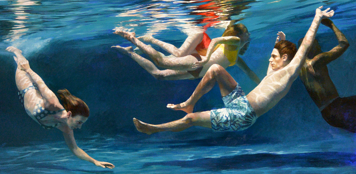 please send me further information on the artwork: Anne Leone, "Cenote Series: Five Swimmers #2", 2012-14 Acrylic on canvas 92 × 182 cm # 4454